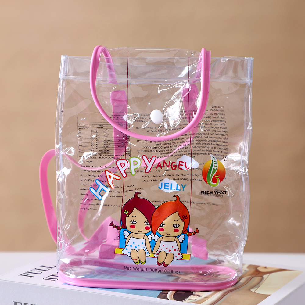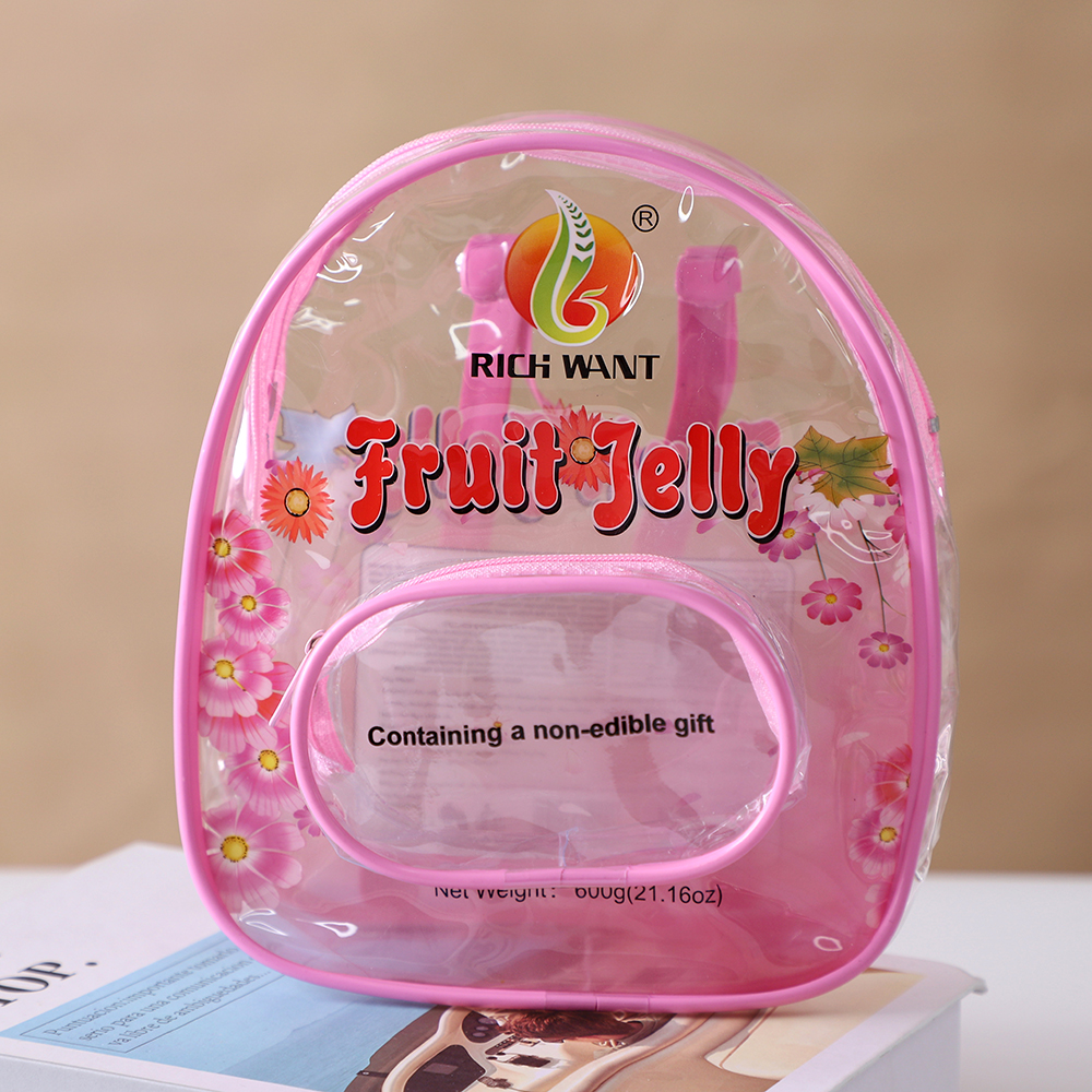 Factory direct supply food-grade PVC clear backpack packaging bag, logo printable, creative-shaped jelly candy package, customizable, MOQ 100 pieces with fast sampling.