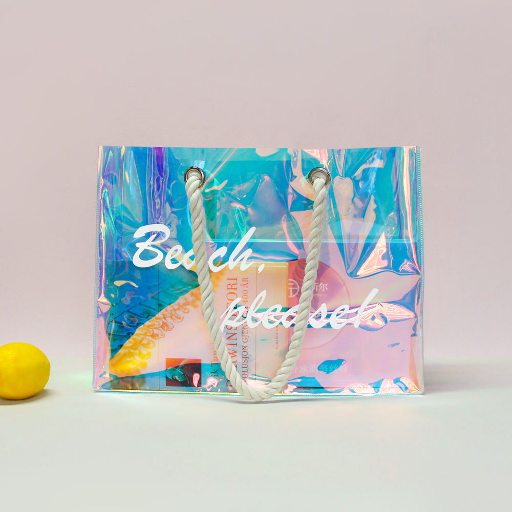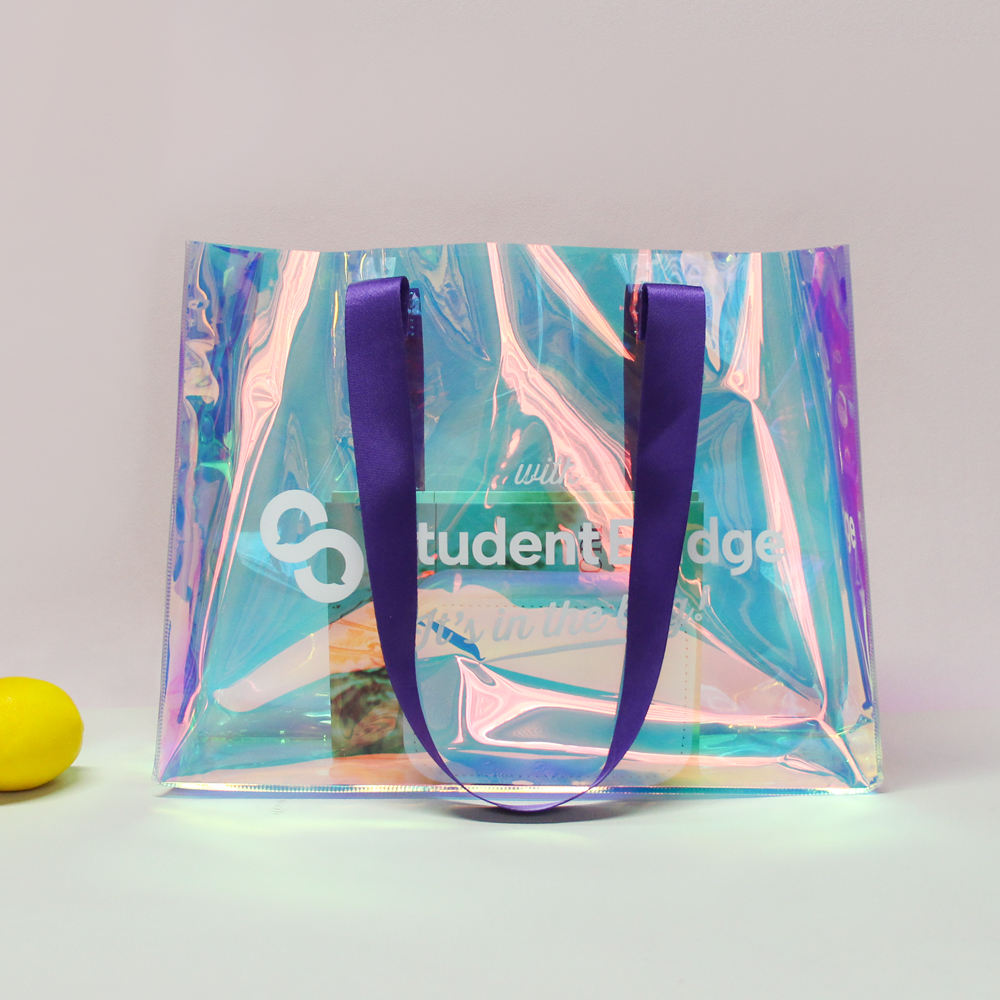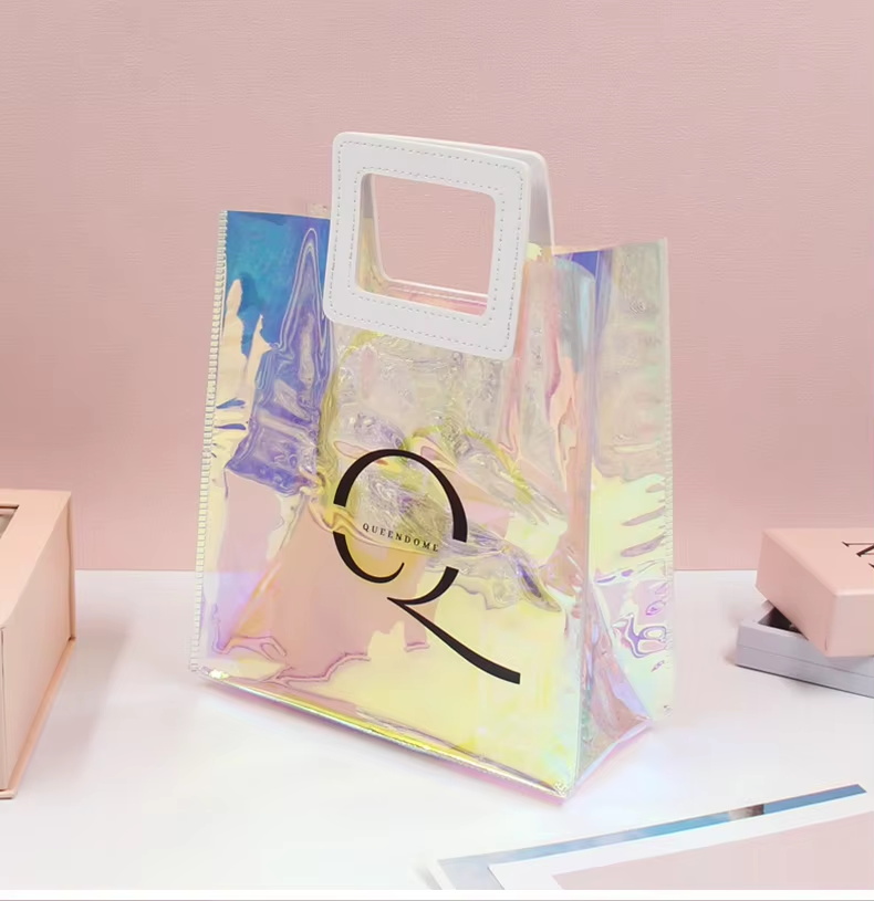pvc镭射手提袋logo幻彩TPU加厚网红购物袋炫彩礼品包装袋