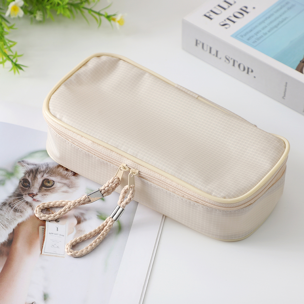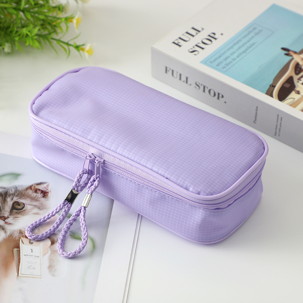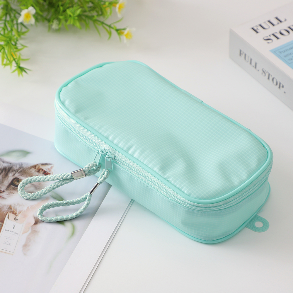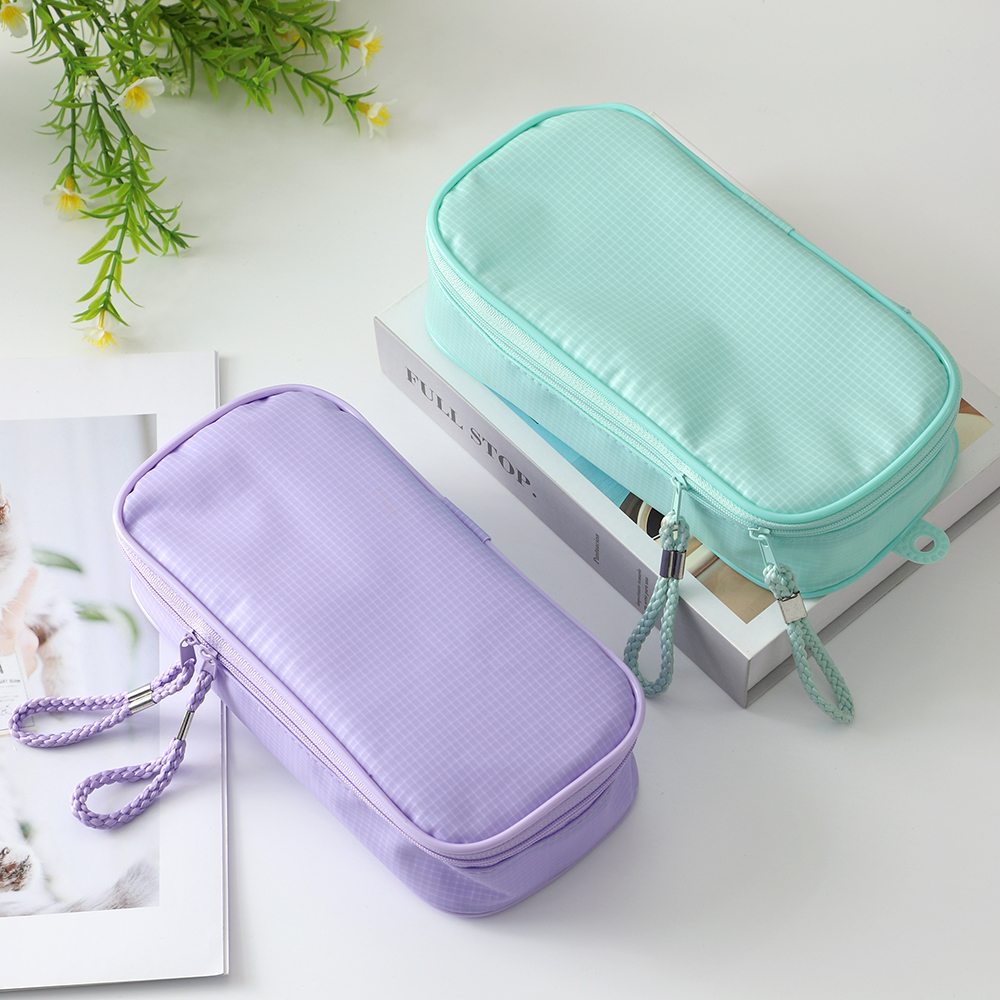 Style Design: Multiple colors available (mint green/light purple/beige), double zipper closure + braided lanyard for easy portability, suitable for storing cosmetics, stationery, travel gadgets, etc.;