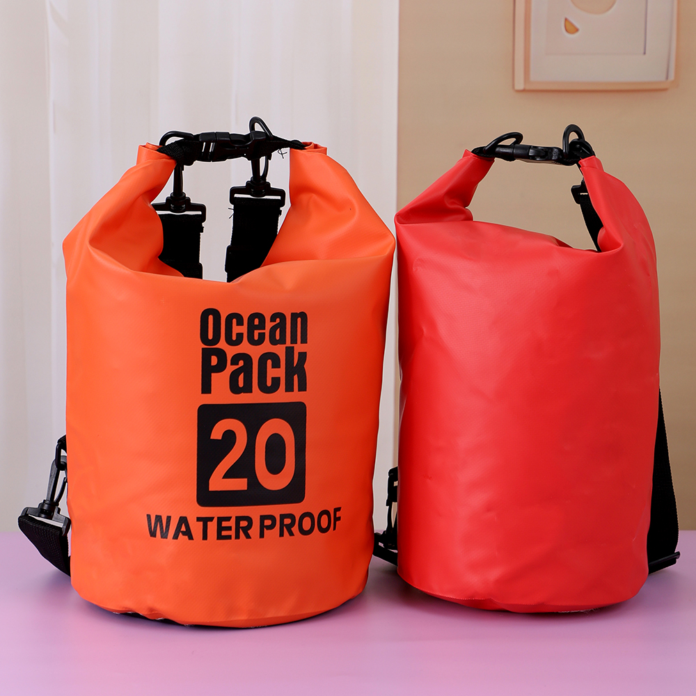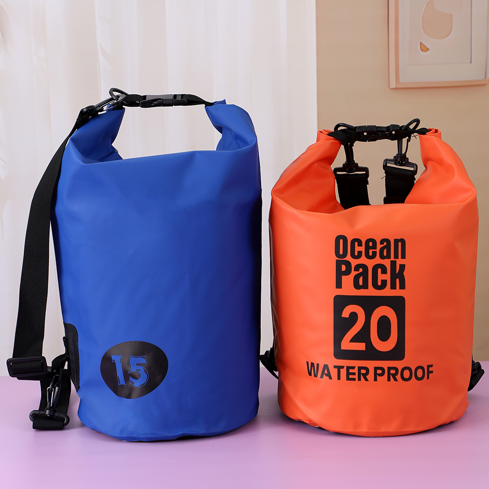 Package includes: 1 waterproof dry bag (15L/20L optional) + 1 adjustable shoulder strap;Package dimensions: 15L (≈25×40cm), 20L (≈30×45cm);Material: Thick PVC waterproof fabric + nylon webbing.