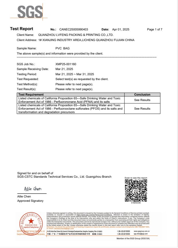 Per - and Polyfluoroalkyl Substances (PFAS), often called “forever chemicals,” have gained widespread attention due to their persistence in the environment and potential health risks. Our PFAS test reports utilize advanced analytical techniques, such as liquid chromatography - mass spectrometry (LC - MS), to detect even trace amounts of these substances in materials ranging from packaging films and waterproof fabrics to food contact materials. With increasing global regulations restricting PFAS use—including the EU’s REACH regulation and U.S. state - level bans—our reports help you stay ahead of compliance curves, demonstrate environmental responsibility, and appeal to eco - conscious consumers.